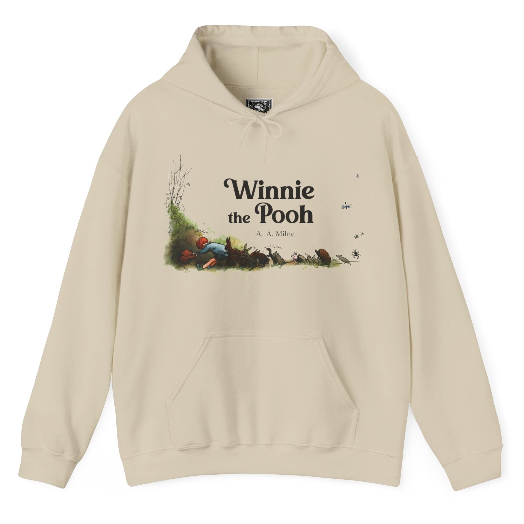 Your whimsical story time awaits! Cozy up for your next grand expotition with our Winnie-the-Pooh unisex Hoodie. This full-color hoodie showcases artwork from A. A. Milne's children's classic along with a bold title. Made from a sand colored polyester-cotton blend that’s warm and comfy, our pullover hoodie is perfect for your every adventure.