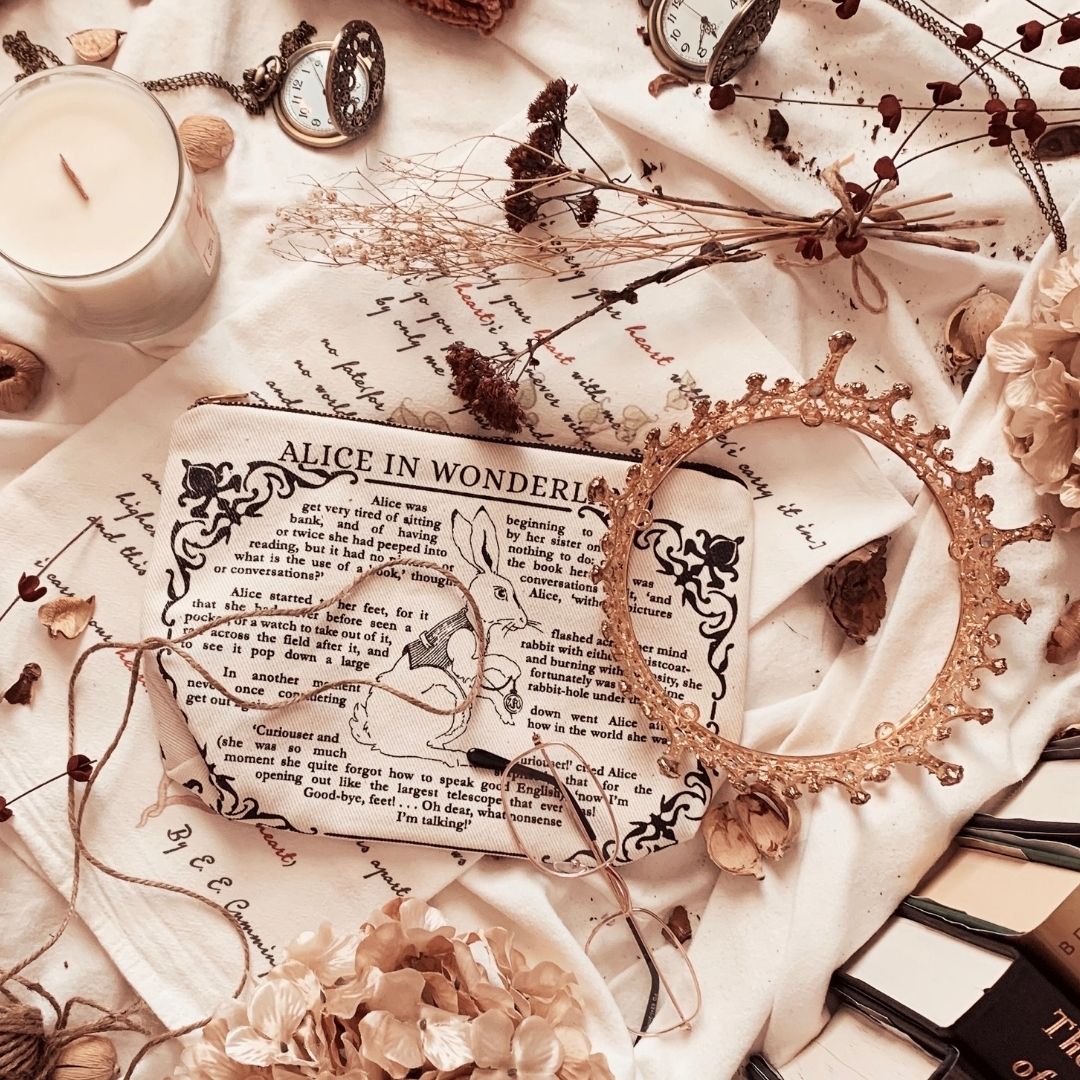 Bring order to the madness with this Book Pouch featuring text from Lewis Carroll's famous children's tale, Alice's Adventures in Wonderland, alongside new hand-drawn illustrations.