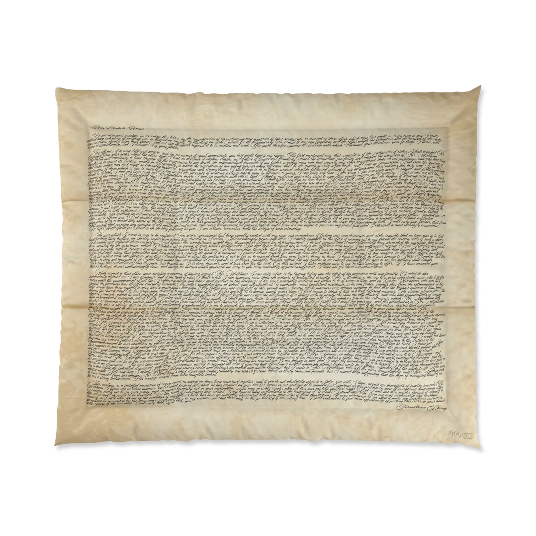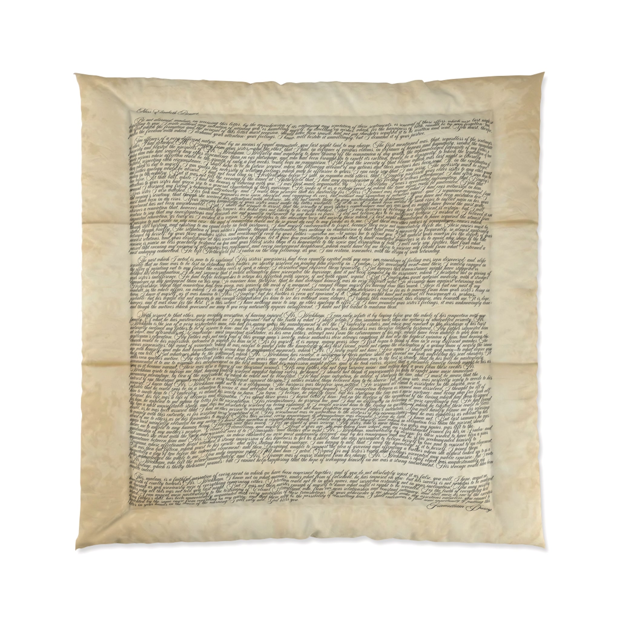 Bring the quiet romance of Austen’s world to your bedroom with our Mr. Darcy's Letter Comforter. This comforter, inspired by Darcy’s letter to Elizabeth, features elegant script across the duvet, as though a cherished letter has been unfolded across your bed. Perfect for Jane Austen fans, hopeless romantics, and anyone who dreams of Pemberley, this set turns your bedroom into the most romantic spot in the house.